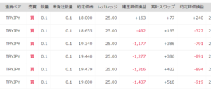 トルコリラ自体が値下がりしているので、どんどんマイナスが大きくなっております。それでもやっぱりスワップの額を見ると、ほかの高金利通貨とは一線を画したワクワク感を感じますね。人はみなこうやってトルコリラにはまっていくのであろう…。