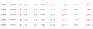 トルコリラ自体が値下がりしているので、どんどんマイナスが大きくなっております。それでもやっぱりスワップの額を見ると、ほかの高金利通貨とは一線を画したワクワク感を感じますね。人はみなこうやってトルコリラにはまっていくのであろう…。